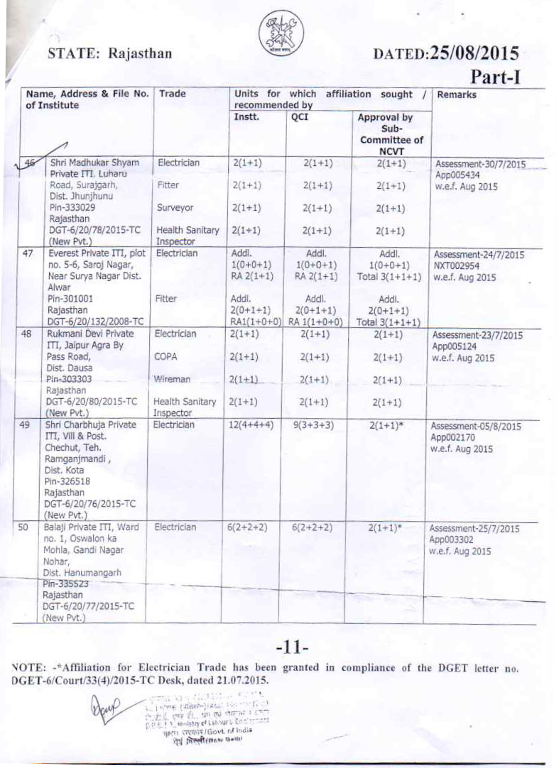 Jhunjhunu (Rajasthan) in order to provide a high quality technical education and training & a Sharp Economically Development . Under this concept ITI. of